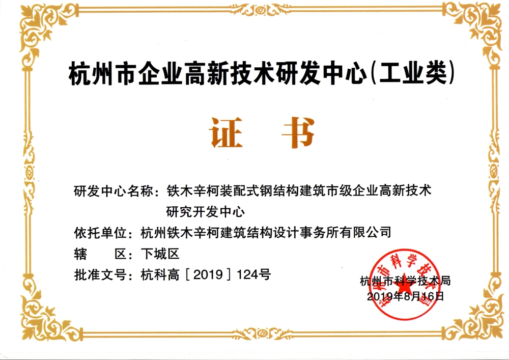 浙江省鐵木辛柯裝配式鋼結(jié)構(gòu)建筑高新技術(shù)企業(yè)研究開(kāi)發(fā)中心