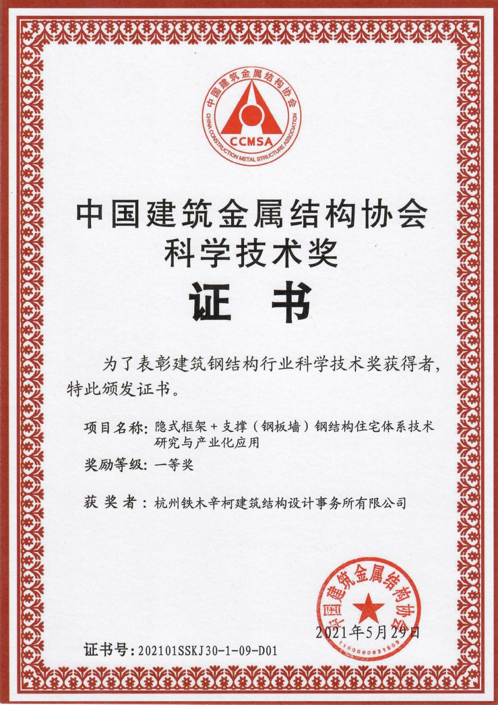 中國(guó)建筑金屬結(jié)構(gòu)協(xié)會(huì)科學(xué)技術(shù)獎(jiǎng)一等獎(jiǎng)