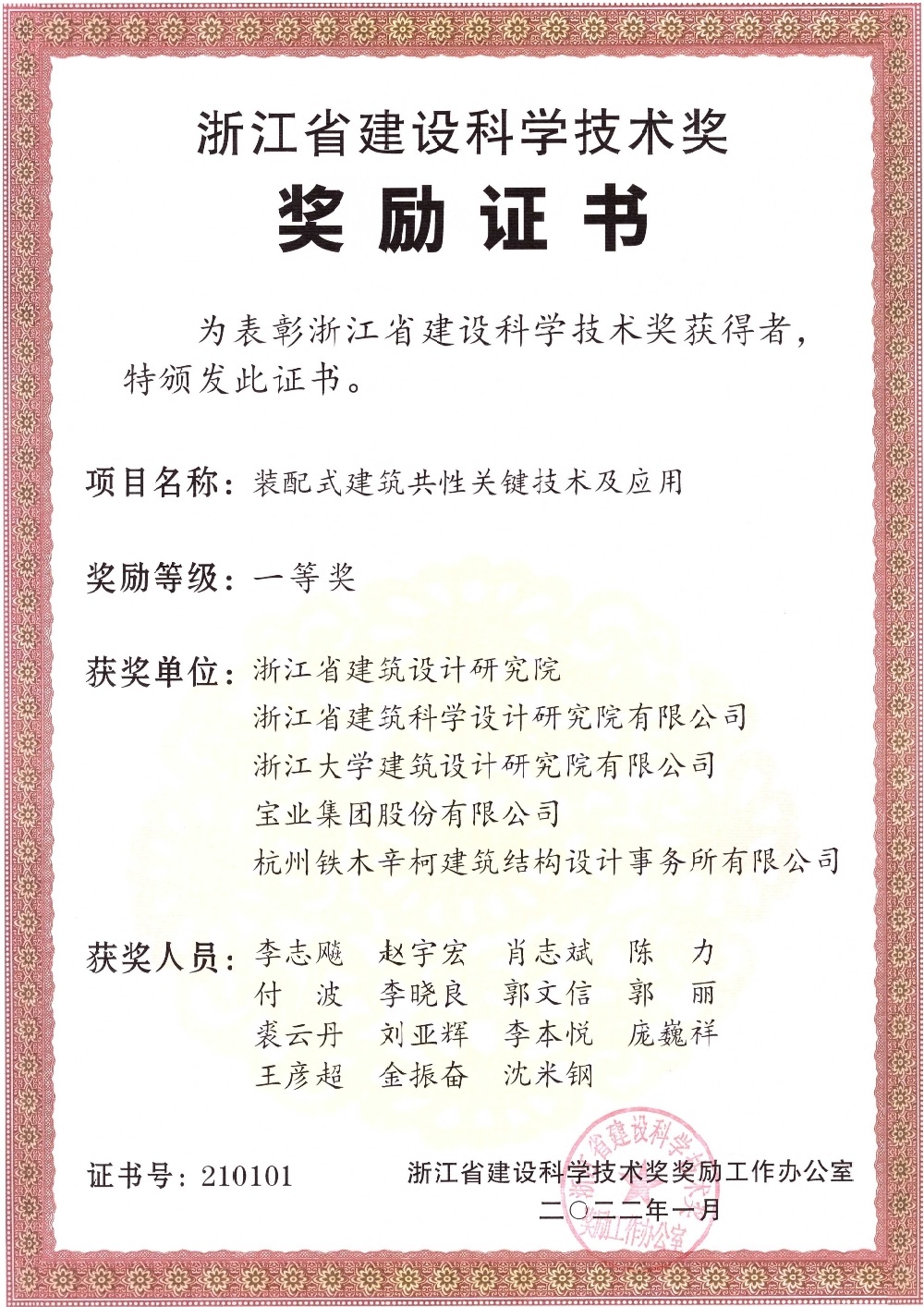 2021年浙江省建設(shè)科學(xué)技術(shù)獎(jiǎng)一等獎(jiǎng)