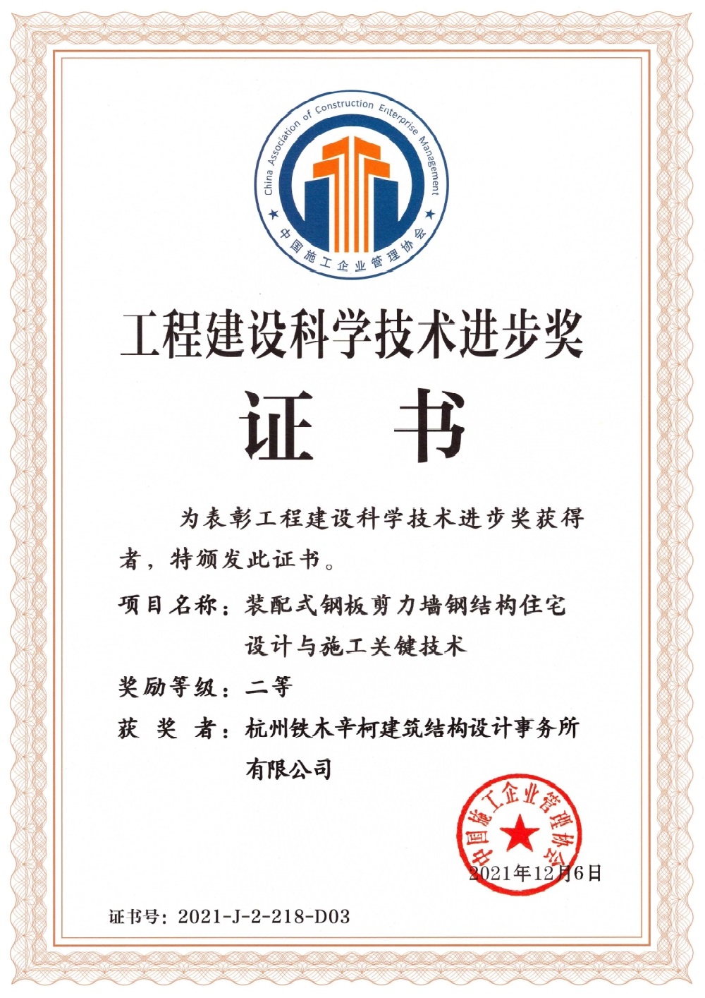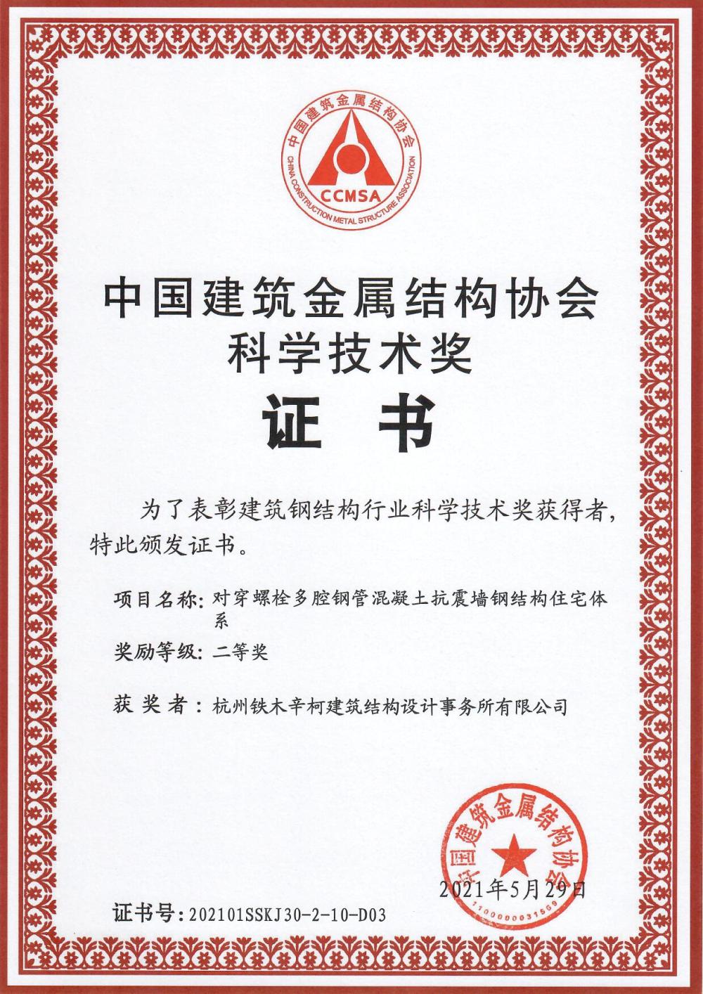中國(guó)建筑金屬結(jié)構(gòu)協(xié)會(huì)科學(xué)技術(shù)獎(jiǎng)二等獎(jiǎng)