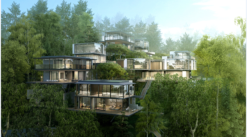 鋼結構住宅在大型房產項目中的應用,是近幾年的事情。2016年5月,綠地在四川峨眉雲中花嶺項目中建設了16幢高層旅游度假地產項目,采用鋼結構住宅體系,建筑面積7.5萬平方;2016年6月,綠城在杭州柳岸曉風項目中應用3幢26層高層住宅,建筑高度80米,1個月完成13層;之后,綠城又在桂語江南3幢23層住宅、鳳起潮鳴住宅項目中應用鋼結構,開創了房地產開發商在高端地產項目中應用鋼結構住宅的先河。