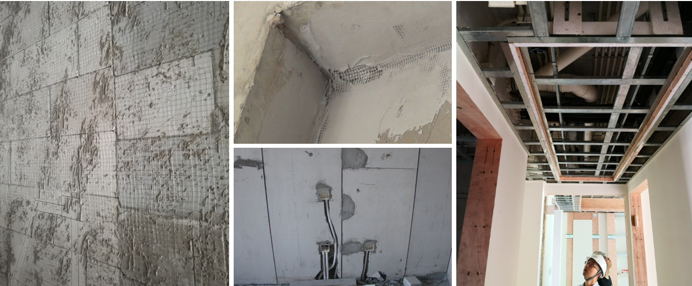 內墻板在很多混凝土建筑中應用也很多,目前市場上有比較成熟的施工隊伍和產品廠家,價格也相對可控。施工控制點主要是與鋼結構的連接處理;拼縫處的防火、隔聲、抗裂處理等。
