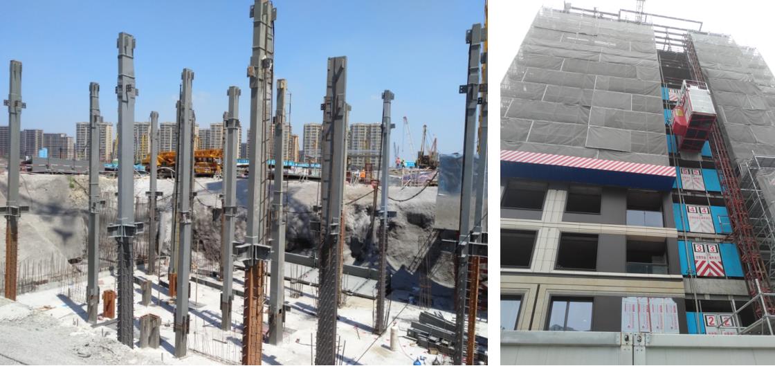 本項目鋼結構由杭州鐵木辛柯建筑結構設計事務所設計,主體結構采用隱式框架體系,局部采用鋼板組合剪力墻。剪力墻布置在局部外墻和樓電梯間等位置,套內布置隱式框架柱,戶型空間靈活通透。