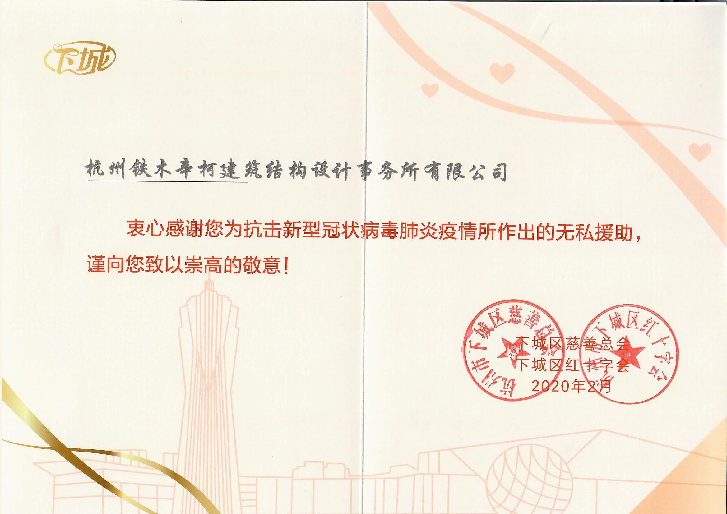 2020年2月8日至3月3日,杭州鐵木辛柯建筑結(jié)構(gòu)設(shè)計事務(wù)所有限公司向下城區(qū)中醫(yī)院(文暉社區(qū)衛(wèi)生服務(wù)中心)捐贈一批防疫物資,包括N95/KF94口罩、一次性防護口罩、杜邦防護服、醫(yī)用戶外防護服、護目鏡、手套等。
