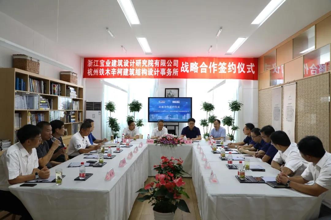 2020年8月25日,杭州鐵木辛柯建筑結(jié)構(gòu)設(shè)計事務(wù)所與浙江寶業(yè)建筑設(shè)計研究院有限公司的戰(zhàn)略合作簽約儀式在寶業(yè)建筑設(shè)計研究院舉行。浙江大學(xué)童根樹教授、寶業(yè)建設(shè)集團(tuán)董事及總經(jīng)理徐鋼,寶業(yè)設(shè)計總經(jīng)理張銘軍、總工程師褚航、總建筑師錢鈞、副院長兼裝配式研發(fā)中心主任李駿嶸,鐵木辛柯總經(jīng)理景亭、副總經(jīng)理陳杭濱、總工程師王彥超、總經(jīng)理助理程志書出席了本次簽約儀式。簽約儀式由寶業(yè)設(shè)計總工褚航主持,綠色建筑協(xié)會及主管部門領(lǐng)導(dǎo)參與見證。