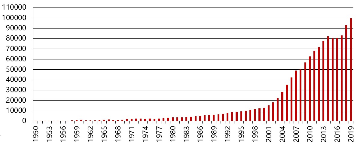 我國歷年粗鋼產(chǎn)量(萬噸)
