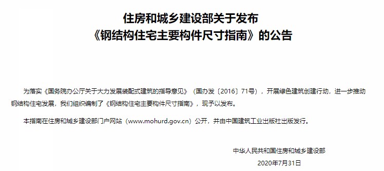 住建部科技與產(chǎn)業(yè)化發(fā)展中心和住宅產(chǎn)業(yè)化促進(jìn)中心主編了《鋼結(jié)構(gòu)住宅主要構(gòu)件尺寸指南》,規(guī)定了住宅中常用構(gòu)件的類型、規(guī)格表,希望原材料廠家能提供標(biāo)準(zhǔn)化型材,設(shè)計(jì)單位能選用,形成良性循環(huán),共同提高部品的標(biāo)準(zhǔn)化水平,降低過程成本。