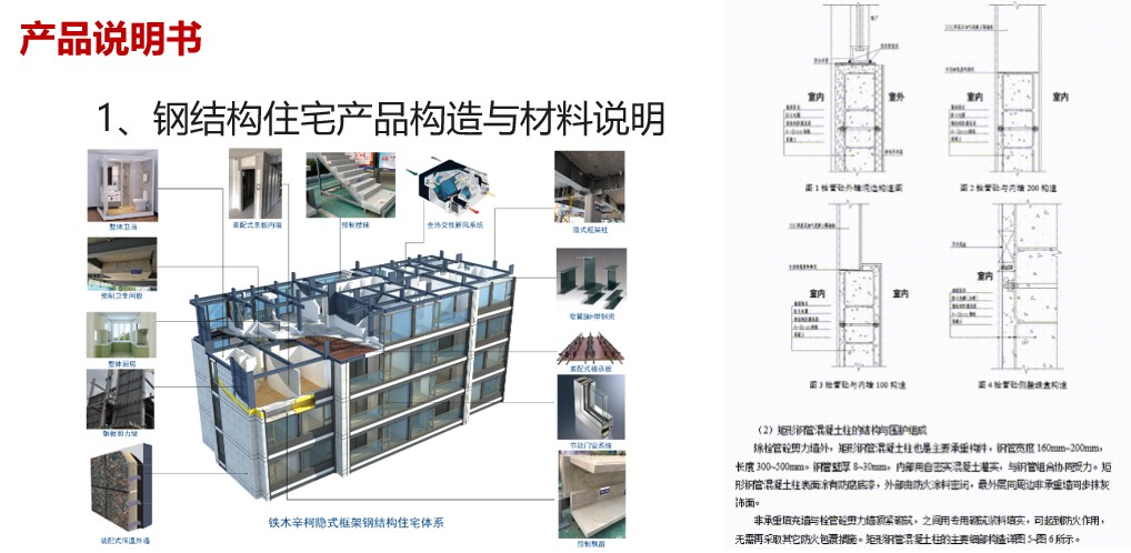 一是產(chǎn)品說明書。國內(nèi)商品房開發(fā)商在產(chǎn)品交付時(shí),都會(huì)為業(yè)主提供產(chǎn)品說明書,介紹產(chǎn)品的構(gòu)成、特點(diǎn)、使用說明以及后期維保等。鋼結(jié)構(gòu)住宅在商品房中的應(yīng)用案例總體較少,一些開發(fā)企業(yè)也在研究應(yīng)該向用戶提供什么樣的產(chǎn)品說明書。在市場推廣前期,建議產(chǎn)品說明書盡量詳細(xì)一些,在用戶使用產(chǎn)品過程中可能的問題都加以說明、提醒和技術(shù)指導(dǎo),避免用戶盲目動(dòng)作對(duì)產(chǎn)品有不可預(yù)期的損害。建議產(chǎn)品說明書可以包含以下幾項(xiàng)內(nèi)容: