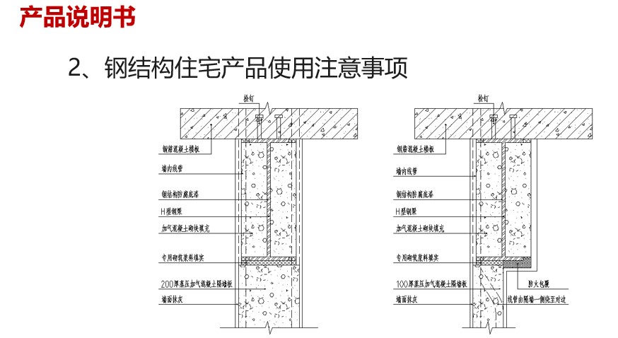 1、鋼結(jié)構(gòu)住宅產(chǎn)品構(gòu)造與材料說明。鋼結(jié)構(gòu)住宅應(yīng)用較多新材料、新部品、新技術(shù),盡量向用戶開誠布公的講清楚,免得用戶不了解產(chǎn)生誤會(huì)。比如輕質(zhì)隔墻、各類保溫做法、防火做法、裝配式裝修做法等,不一定講很深的技術(shù)細(xì)節(jié),要講清楚這些材料選用、構(gòu)造做法的重要性、設(shè)計(jì)依據(jù)的國家規(guī)范圖集等。之前國內(nèi)發(fā)生過用戶認(rèn)為輕質(zhì)保溫材料是建設(shè)方偷工減料的案例。