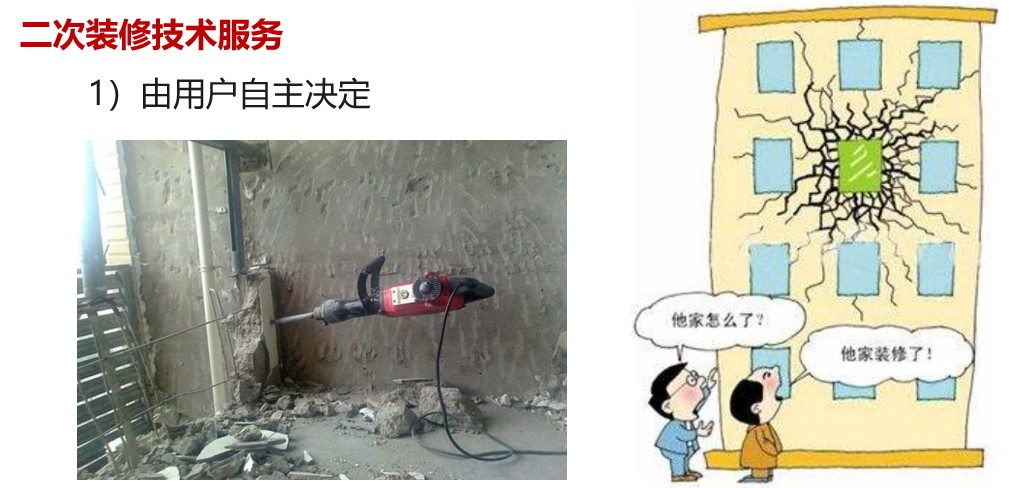 1、目前市場上常見的做法是由客戶自主決定。這就存在用戶盲目裝修的情況,這也是目前大家最關(guān)注的問題,怕出各種各樣的問題,這是應(yīng)該努力避免出現(xiàn)的。
