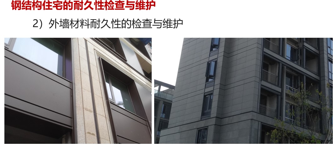 2、外墻材料耐久性的檢查與維保。一些產(chǎn)品的外墻采用幕墻與嵌縫膠的構(gòu)造做法,嵌縫膠屬于有機(jī)材料,類似玻璃幕墻、鋁板幕墻,也要定期的檢查耐久性,進(jìn)行維保。