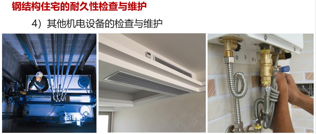 三是鋼結(jié)構(gòu)住宅的耐久性檢查與維保。任何產(chǎn)品在服役期內(nèi),都面臨耐久性檢查與維護(hù)保養(yǎng)問題。傳統(tǒng)住宅也有檢查與維保問題。鋼結(jié)構(gòu)住宅中,基礎(chǔ)、主體結(jié)構(gòu)、主要墻體等,在全壽命周期內(nèi)如果沒有經(jīng)過較大的地震損壞,按現(xiàn)有規(guī)范質(zhì)量要求,是不用經(jīng)常檢查維保的。鋼結(jié)構(gòu)住宅的耐久性檢查與維保主要有以下幾個(gè)方面。