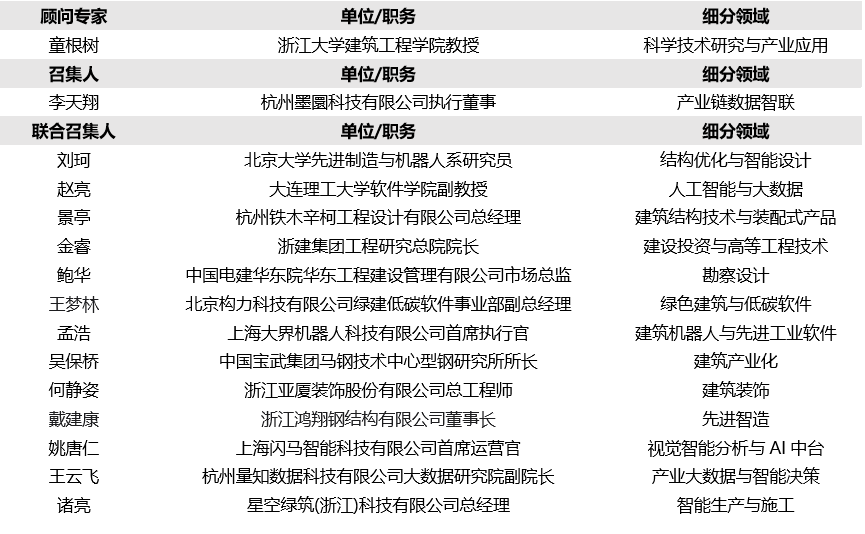 智能建造工作組顧問專家、召集人與聯合召集人名單
