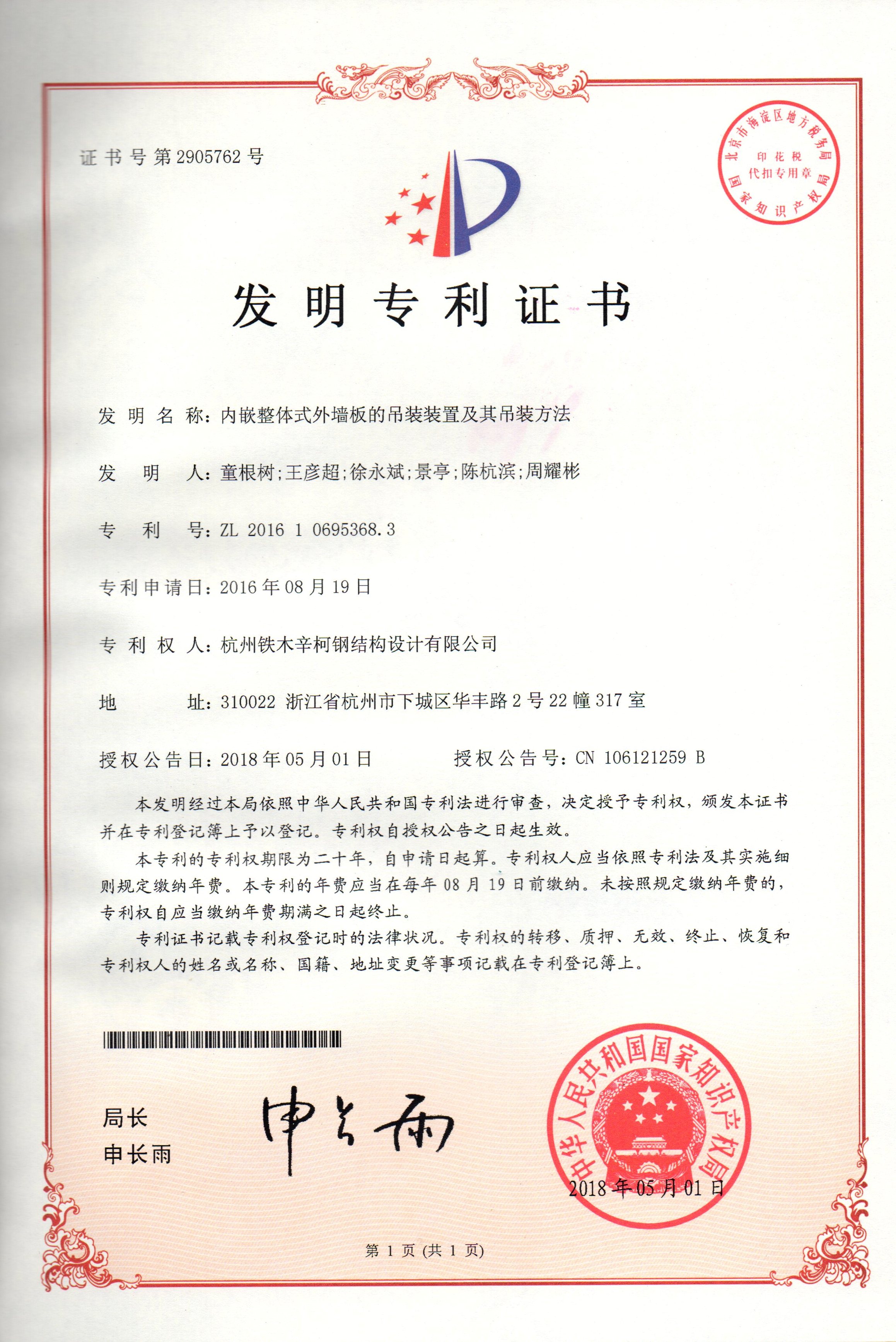 9內嵌整體式外墻板的吊裝裝置及其吊裝方法