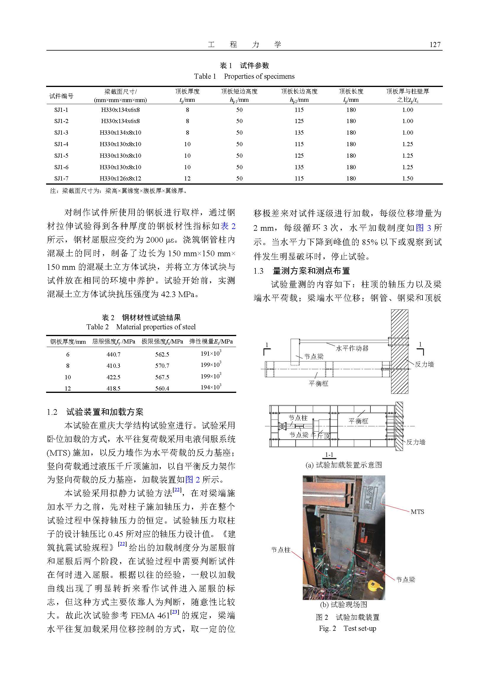 矩形鋼管混凝土柱-H形鋼梁外頂板式節點抗震性能試驗研究[全文]